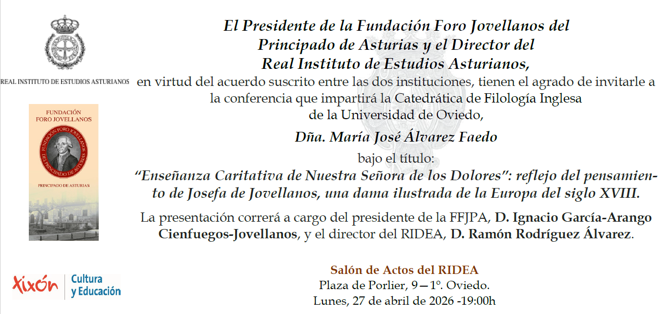 En virtud del acuerdo suscrito entre la Catedrática de Filología Inglesa de la Universidad de Oviedo, “Enseñanza Caritativa de Nuestra Señora de los Dolores”: reflejo del pensamiento La presentación correrá a cargo del presidente de la FFJPA,